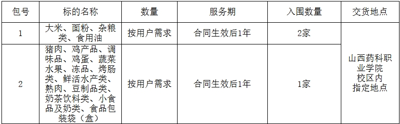 一、项目名称:饮食物资供应商入围项目