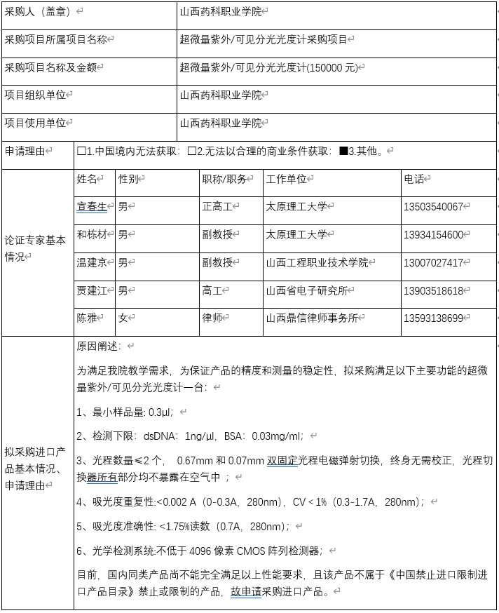 365上市公司官网入口超微量紫外/可见分光光度计采购项目拟采购进口产品满足使用需求,现将申请采购进口产品的基本情况、专家论证情况及意见进行公示,公示期为2022年8月3日起至2022年8月9日止(五个工作日)。若对专家组论证意见存在异议,可在公示期内提出,并将相关意见和依据,书面报送采购单位。