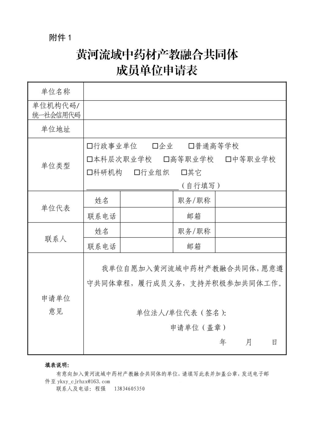 附件1:黄河流域中药材产教融合共同体成员单位申请表.docx