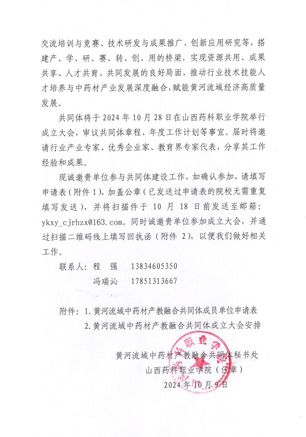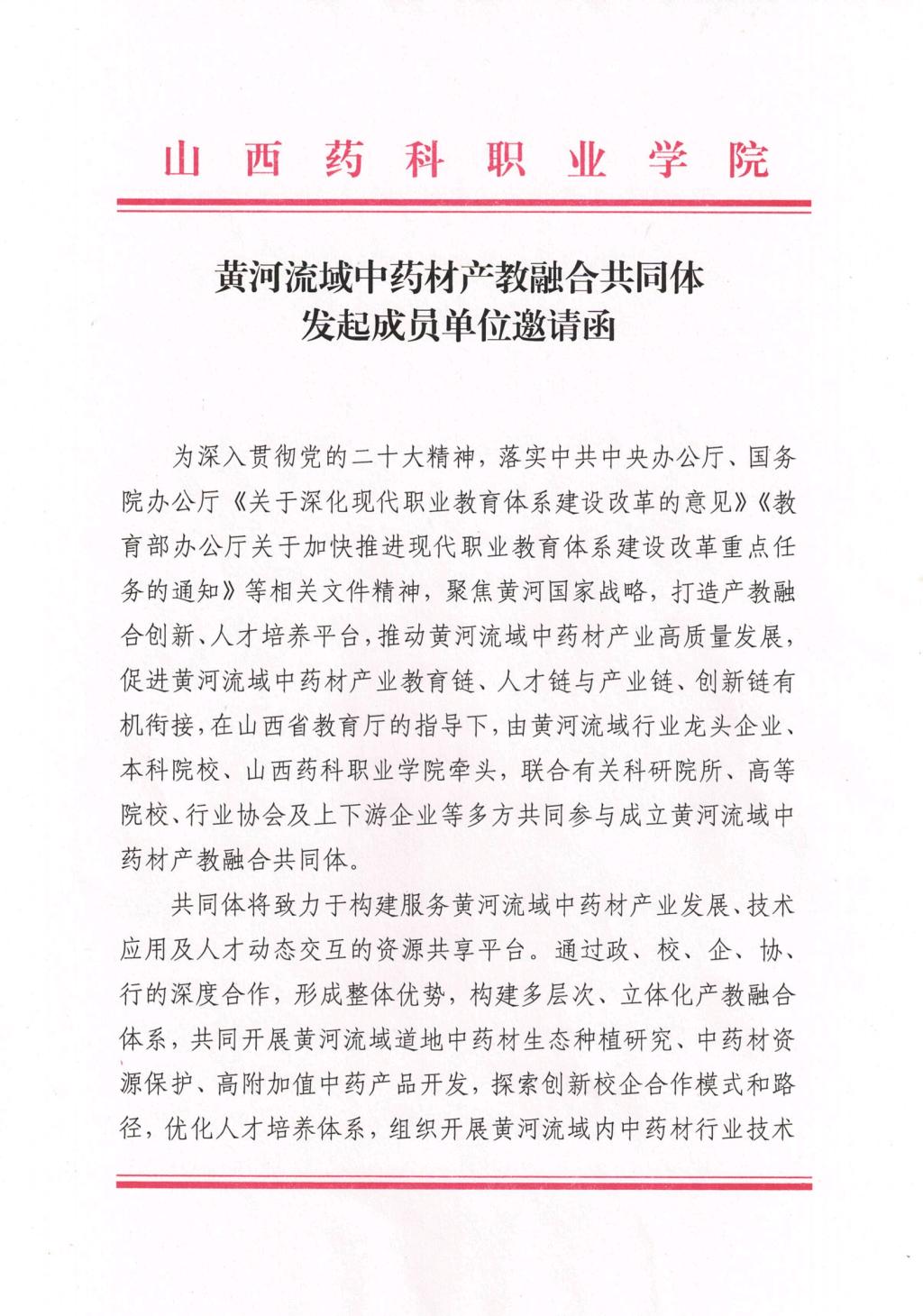 黄河流域中药材产教融合共同体发起成员单位邀请函