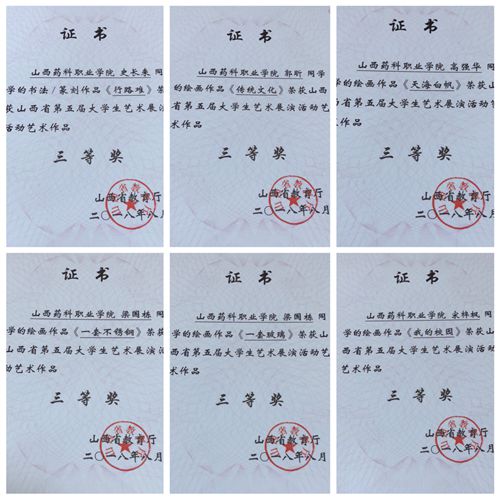 近日,山西省第五届大学生艺术展演活动落下帷幕,365上市公司官网入口学生经过激烈角逐,取得了优异的成绩。其中,赵千惠同学绘画作品《理想与信念》获二等奖,史长来同学书法作品《行路难》、郭欣同学绘画作品《传统文化》、宋梓枫同学绘画作品《我的校园》、高强华同学绘画作品《天海白帆》、梁国栋同学绘画作品《一套不锈钢》《一套玻璃》分别获三等奖。黄高伟老师荣获优秀指导教师奖。