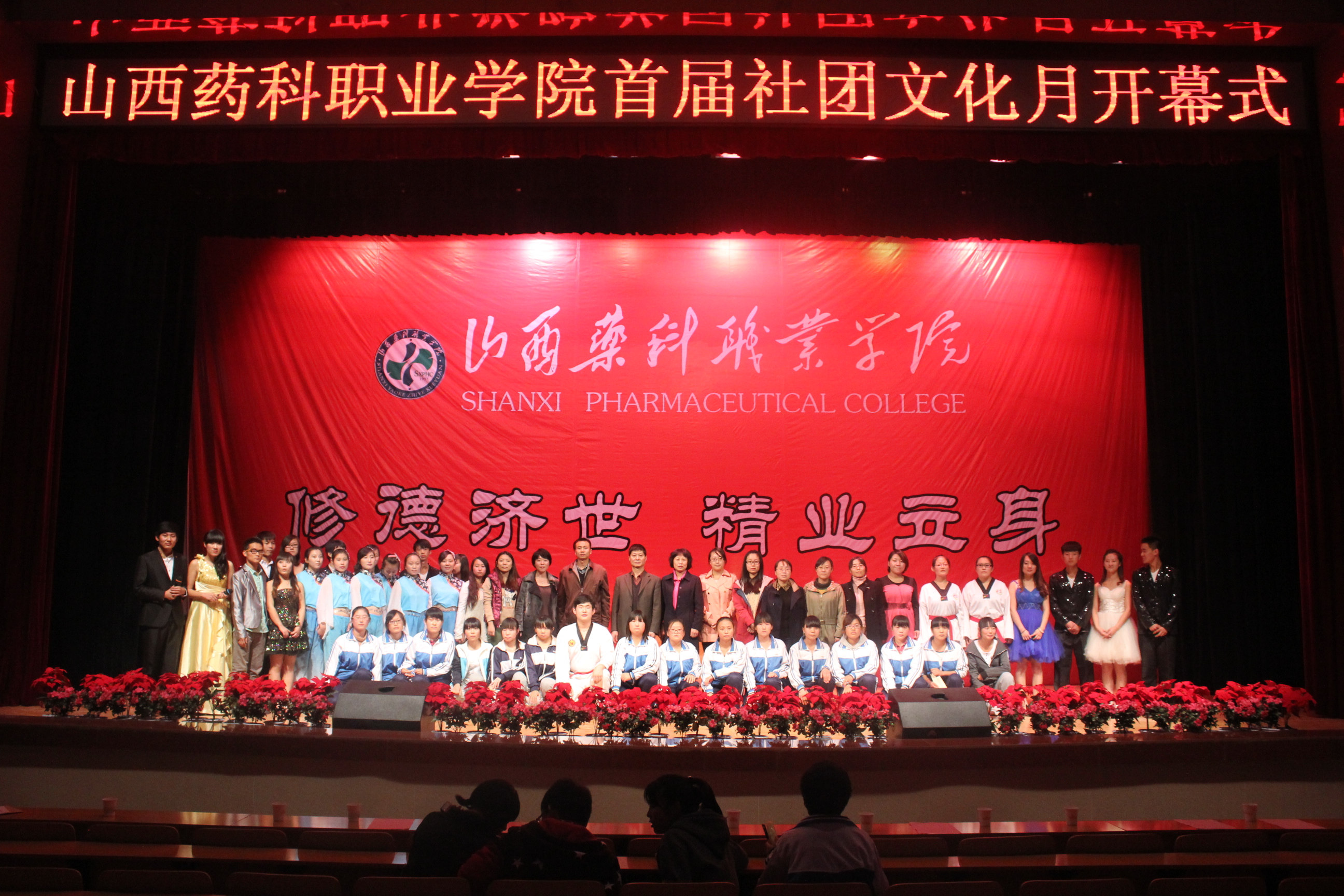 为进一步发挥学生社团在校园文化建设和提升学生综合素质方面的重要作用,院团委于10月21日下午在大礼堂隆重举行首届社团文化月开幕式。院党委委员、副院长胡尔雅同志出席开幕式。学院各分团委书记、全体社团成员和部分学生代表近1000人参加开幕式。开幕式由院团委副书记付平同志主持。