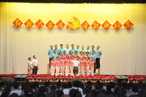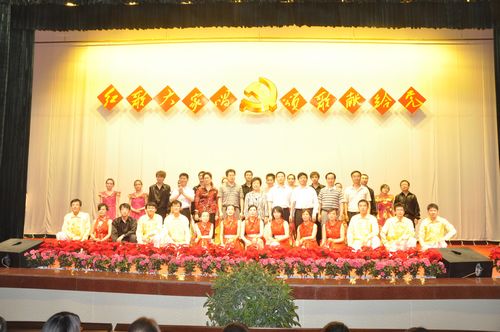 文艺演出以雄浑激昂、旋律优美的大合唱《没有共产党就没有新中国》、《我和我的祖国》拉开帷幕。接下来,两院职工纷纷登场,尽展风采,其中有男女二重唱“长江之歌”,有诗歌朗诵“鲜红的党旗不褪色”,还有舞蹈“绣红旗”等。国家一级演员、省曲艺团书记王兆麟等还友情客串,为大家带来了饶有兴味的表演节目。职工们的精彩演出为师生们送上了一台内容丰富的精神盛宴,唱响了红色旋律,弘扬了革命精神,并激励着现场每位观众。