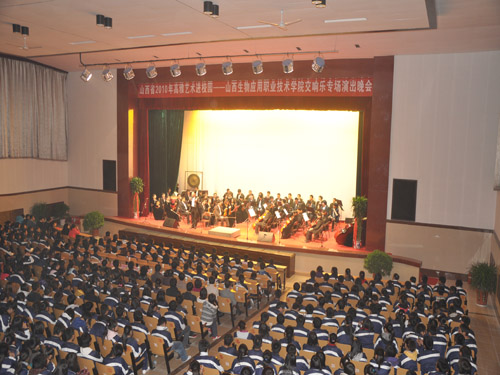 踏着深秋的瑟瑟韵律,沐浴着高雅艺术的浓浓气息,山西省2010年高雅艺术进校园----交响乐专场演出于10月28日晚在365上市公司官网入口大礼堂隆重举行。省教育厅体卫处原处长王德科,山西艺术职业学院副院长单红龙,学院党委副书记、院长李华荣,党委副书记、纪委书记龚晋文,党委委员、副院长胡尔雅出席演出活动。全院一千多名师生观看了演出。