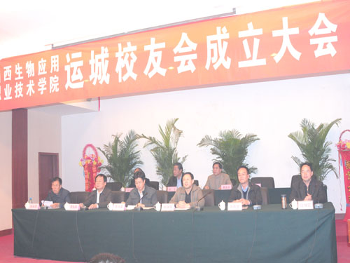 2010年11月27日,山西生物应用职业技术学院运城校友会成立大会在运城隆重召开。运城宾馆门前彩旗飘扬,红色拱门醒目耀眼,几十个祝贺单位送来的花篮分别装点在了会议室门厅和主席台两侧,一派喜气洋洋的气氛。