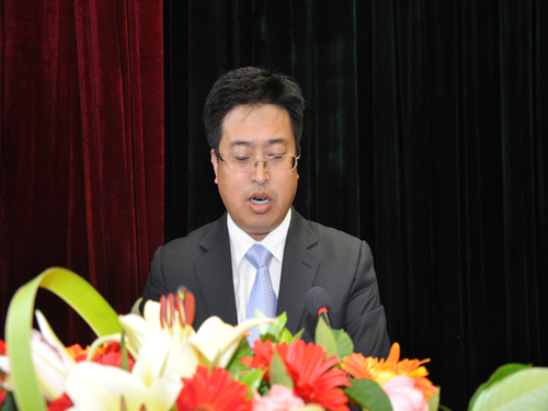 省食品药品监督管理局赵光国局长发表了重要讲话。他首先代表省局党组向全体教师和教职员工致以节日的问候,向受表彰的先进个人表示热烈的祝贺,向全体同学表示良好的祝愿。同时肯定了新班子到任后,近一年来学院出现的新变化、新气象、新成效。