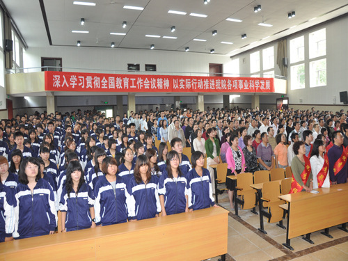 李院长在致辞中强调,我们要始终把促进学生健康成长作为一切工作的出发点和落脚点,改变教育观念,创新教学方式,教给学生学习的方法、应变的技巧、思考的习惯、实践的能力,使其成为对国家和社会有用的人;他要求广大教师必须学为人师,修身正己,用高尚的人格影响学生,用渊博的知识撑起学生求知的天空,用过硬的本领指引学生顺利走向职场。学院一定要准确把握社会经济的发展趋势和职业教育面临的严峻挑战,牢固树立“面向未来、面向实践、面向技术”的办学理念,坚定不移地走职业教育道路,实施“质量、特色、就业、声誉”四大工程,实现“首岗适应、多岗迁移、生动活泼、全面发展”的人才培养目标,办出企业满意、社会满意、师生满意的高等职业教育。