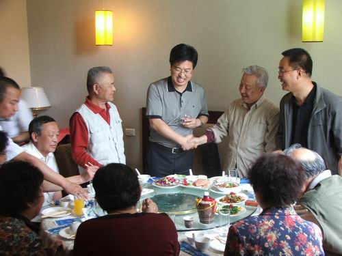 之后,院领导与老同志们共进午餐。领导们与老同志愉快地交谈,其乐融融,老同志们小别重逢后也格外亲热,餐厅中洋溢着一片温暖、热烈、和谐的气氛。