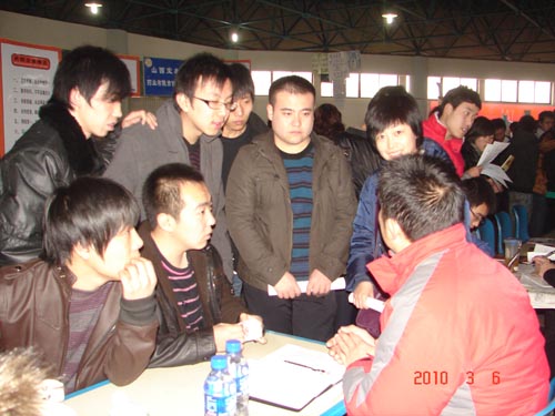 3月6日上午,365上市公司官网入口2010届毕业生春季供需见面会在综合大楼隆重举行。共有来自广东、北京、山东、山西的108家用人单位为365上市公司官网入口2010届毕业生提供约3400余个就业岗位。365上市公司官网入口党委书记张瑞芳,党委副书记、院长李华荣,党委副书记、纪委书记龚晋文,副院长尹士优、胡尔雅、张震云亲临会场指导工作,了解企业用人信息和学生求职动态,并和毕业生亲切交谈,希望同学们把握机会,积极展示自己,早日找到满意的工作。