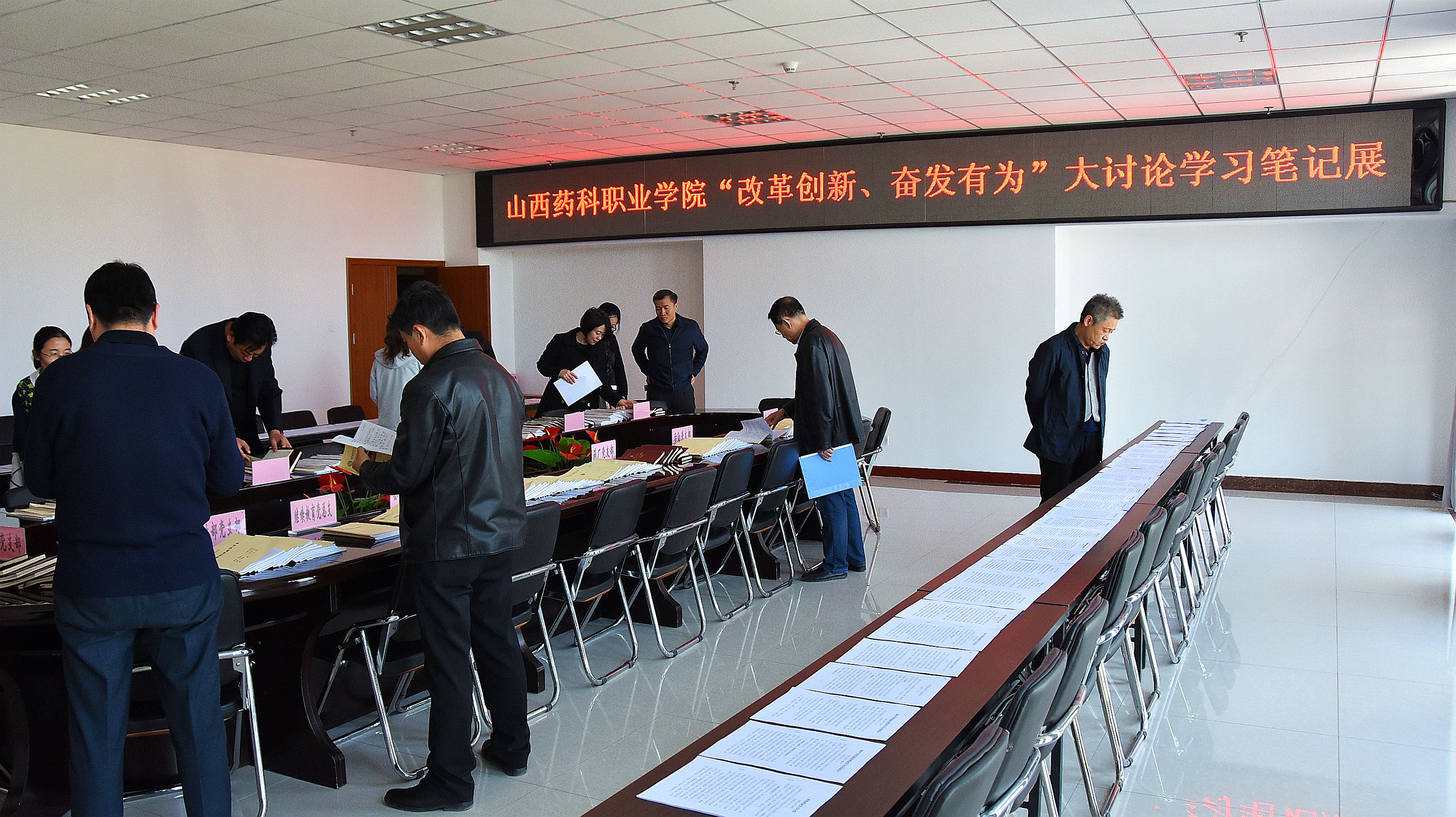 为进一步激发全院教职工学习习近平新时代中国特色社会主义思想的自觉性和积极性,深入开展“改革创新、奋发有为”大讨论,2019年4月11日至12日,365上市公司官网入口在综合楼523会议室举办了“改革创新、奋发有为”大讨论学习笔记展览活动。学院领导莅临指导,各党总支、直属党支部党员代表参加了观展。