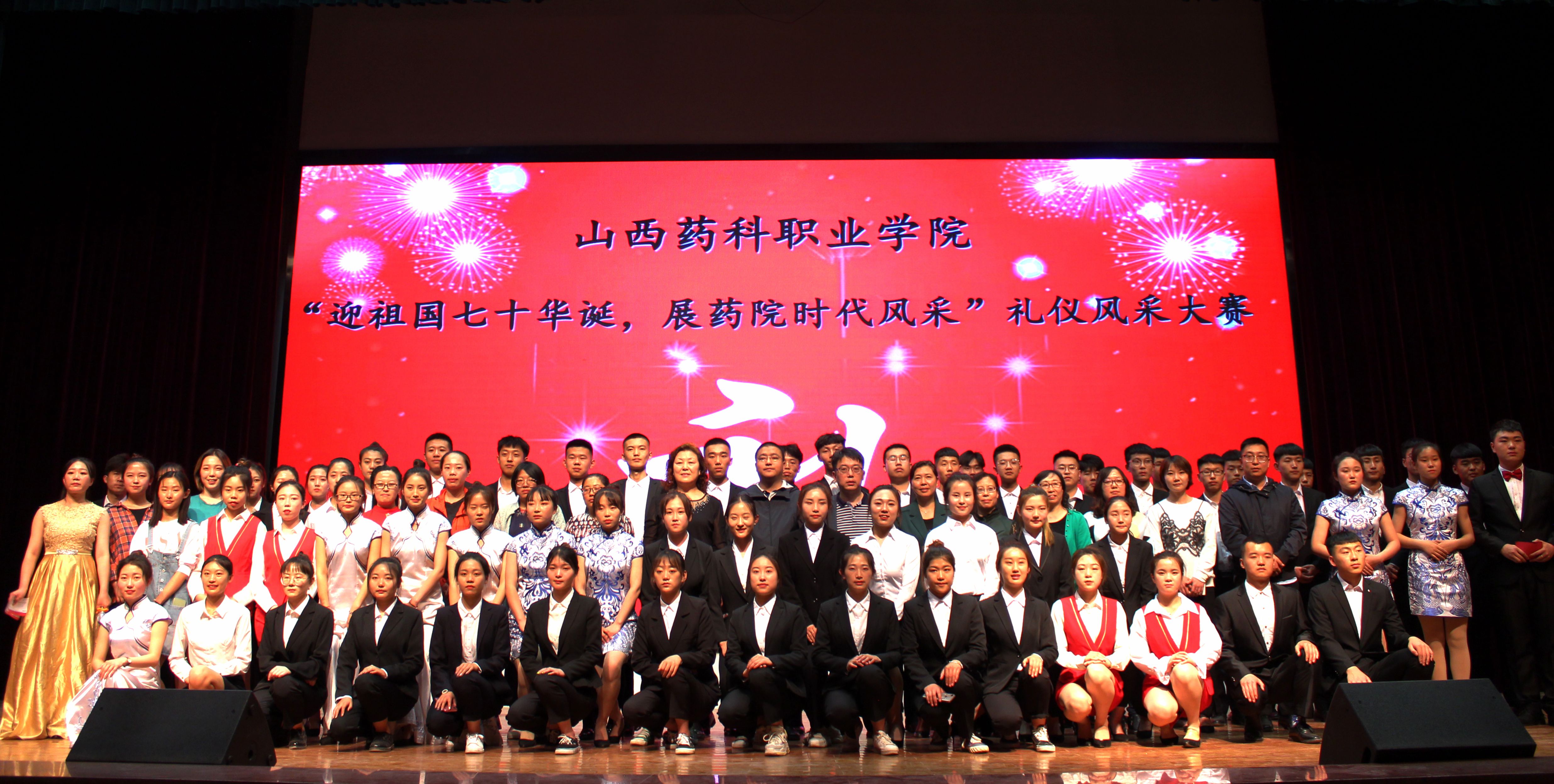 为彰显中华传统礼仪文化的时代价值,展现药院学子的礼仪风采,让学生知礼仪,学礼仪,用礼仪,2019年5月15日下午,由学院教务处主办、工商管理系承办的“迎祖国七十华诞,展药院时代风采”礼仪大赛在学院大礼堂隆重举行,来自6个教学系的12支代表队参加了此次比赛。哈药集团营销有限公司山西省省区经理王巍凯,教务处等部门负责人与800余名师生共同观看本次比赛。