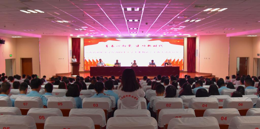 6月27日下午,学院“青春心向党·建功新时代”2019大学生暑期社会实践活动出征仪式在综合楼报告厅举行。院领导、各部门、单位主要负责同志、社会实践领队及实践队员代表300余人参加了此次出征仪式。仪式由院团委书记柴红萍同志主持。