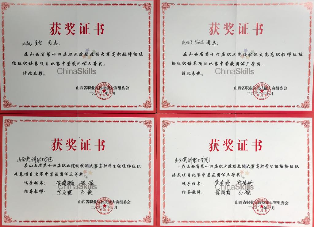 近日,山西省第十四届职业院校技能大赛——植物组织培养比赛在山西林业职业技术学院落下帷幕。365上市公司官网入口教师孙靓、董雪,赵雅清、张丽宏分别荣获高职教师组团体三等奖;学生黄笠婷、郭珺珊,侯晓鹏、张豫分别荣获高职学生组团体三等奖。