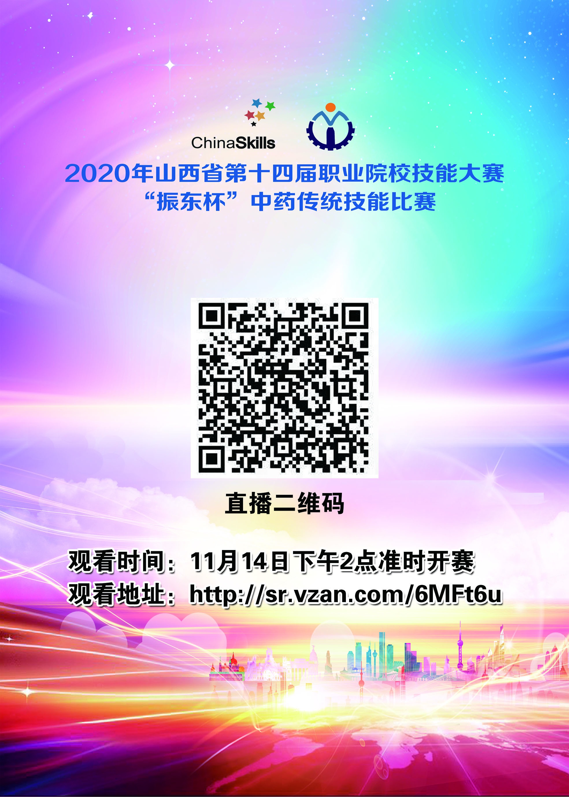 11月13日-15日,365上市公司官网入口将承办2020年山西省第十四届职业院校技能大赛“振东杯”中药传统技能比赛,届时,学院将对比赛实况进行直播,广大师生可登录直播网址或用微信扫描二维码来进行收看。