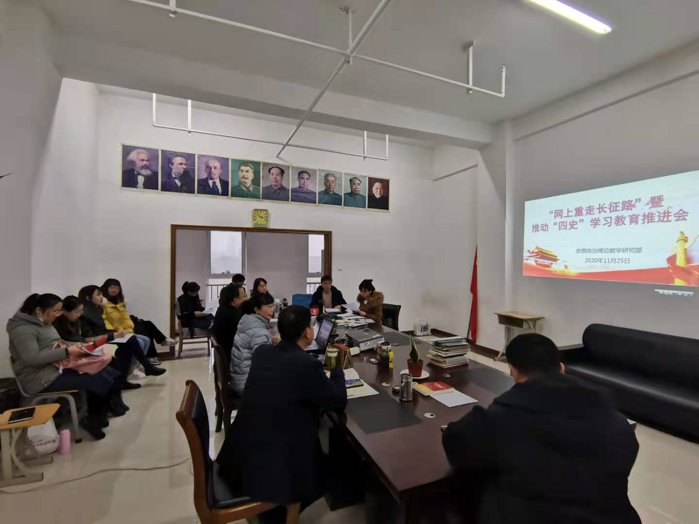 学好党史、新中国史、改革开放史、社会主义发展史是牢记党的初心和使命的重要途径,是党员的一门重要必修课,也是爱国主义教育的重要组成部分。为深入贯彻落实习近平新时代中国特色社会主义思想,推动365上市公司官网入口思政教师学好用好历史,以史鉴今、资政育人,11月25日下午,思政部召开了“四史”学习教育推进会,对下一阶段“四史”学习教育工作作出安排部署,并进行专题辅导。