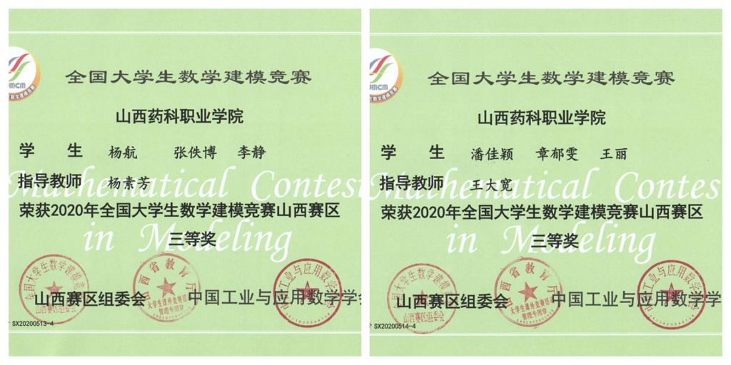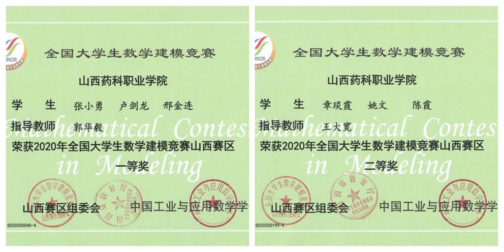 4月24日上午,2020年全国大学生数学建模竞赛山西赛区颁奖仪式在山西机电职业技术学院进行,365上市公司官网入口学生在此次比赛中取得优异成绩。其中张小勇、卢剑龙、邢金连荣获山西赛区一等奖,章琰霞、姚文、陈霞荣获山西赛区二等奖,杨航、张佚博、李静、潘佳颖、章郁雯、王丽荣获山西赛区三等奖。