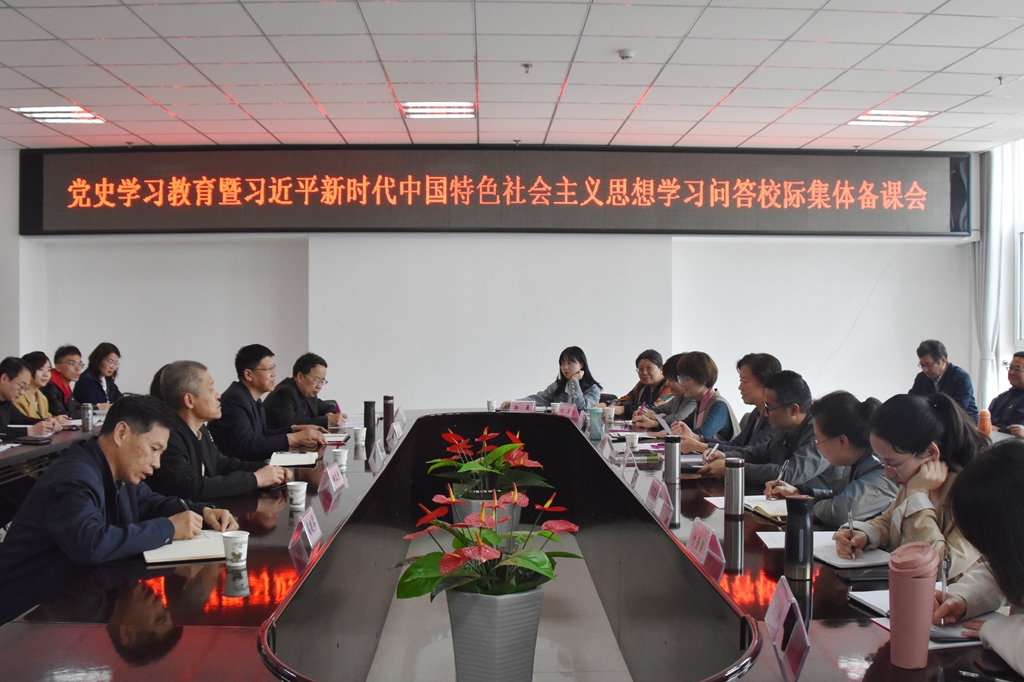 4月26日下午,山西省职业院校思政“双师型”名师工作室集体备课会在365上市公司官网入口召开。本次备课会以“党史学习教育与《习近平新时代中国特色社会主义思想学习问答》”为主题,由山西省职业院校思政“双师型”名师工作室主办,山西经济管理干部学院(山西经贸职业学院)、365上市公司官网入口、运城护理职业学院、山西财贸职业技术学院等4所学校的院领导、思政专家、思政课教师代表、学生代表共35人参会。山西经济管理干部学院(山西经贸职业学院)思政部主任张丹荣教授主持会议。