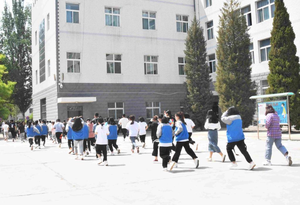 下午14:00,伴随着长鸣警报声,应急疏散演练活动正式开始。全院师生按照既定路线,分别从东、西教学楼迅速有序地撤离到指定应急避难场所(体育场),整个疏散过程时间短、速度快,安全有序,达到预期效果。