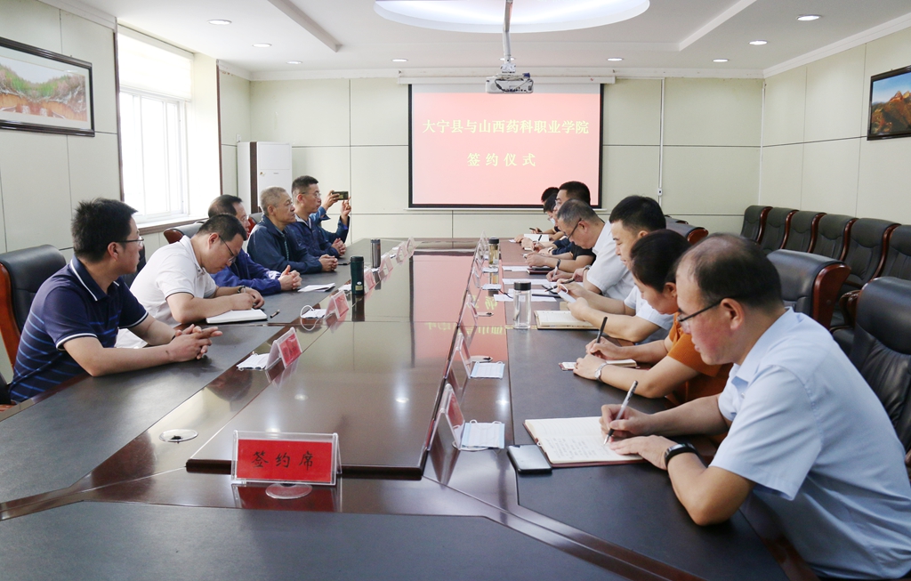 党委书记张瑞芳同志介绍了学院的基本情况。他指出,学院和大宁县开展战略合作是深入贯彻习近平总书记视察山西重要讲话重要指示精神,认真落实省委关于深化省校合作、共建“12大基地”的决策部署的重要举措,学院将全力以赴助力大宁,一是利用学院专业优势,为大宁在中药材种植、栽培等方面献智献策,提供技术服务与支持。二是积极做好大宁县职教中心对口帮扶工作,帮助职教中心提升内涵建设,积极探索乡村振兴育人模式。三是助力大宁乡村振兴产业发展,学院派遣干部、教师到大宁挂职锻炼,把大宁作为学院干部教师的实践基地,进一步促进大宁的乡村振兴,努力实现学院与地方经济社会发展的互利共赢。