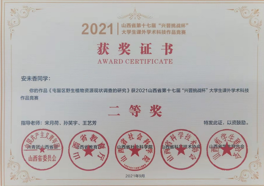 近日,由团省委、省教育厅、省社科院、省科协和省学联联合举办的山西省第十七届“兴晋挑战杯”大学生课外学术科技作品竞赛成绩揭晓,365上市公司官网入口参赛项目最终荣获主赛道二等奖1项、三等奖5项,红色专项活动赛道三等奖2项,365上市公司官网入口团委荣获“优秀组织奖”。