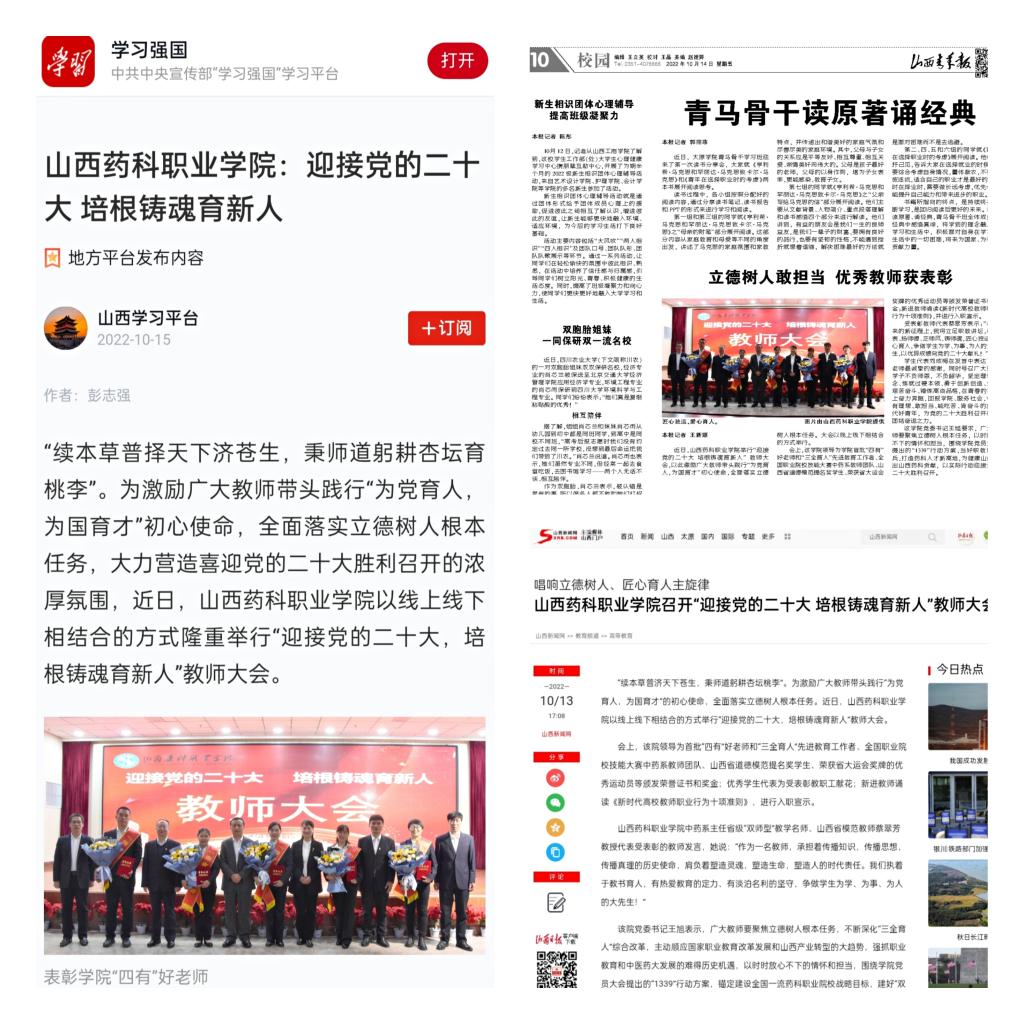近日,学习强国、山西青年报、山西新闻网等媒体分别对365上市公司官网入口“迎接党的二十大,培根铸魂育新人”教师大会进行了宣传报道。