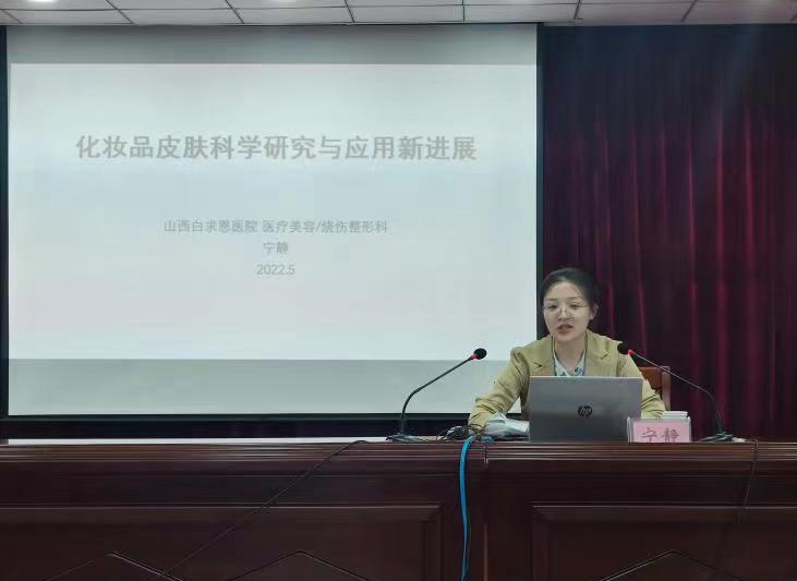在2023年职业教育活动周全面开启之际,为丰富职业教育周活动内容,提升学生专业素养,增强师生对化妆品行业发展的了解,5月15日下午,学院特邀山西白求恩医院宁静博士在学院综合楼527会议室作了“化妆品皮肤科学研究与应用新进展”的专题讲座,制药工程系全体教师和部分学生代表聆听了此次讲座。