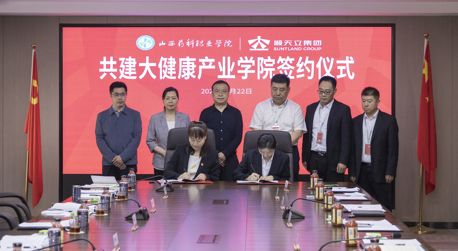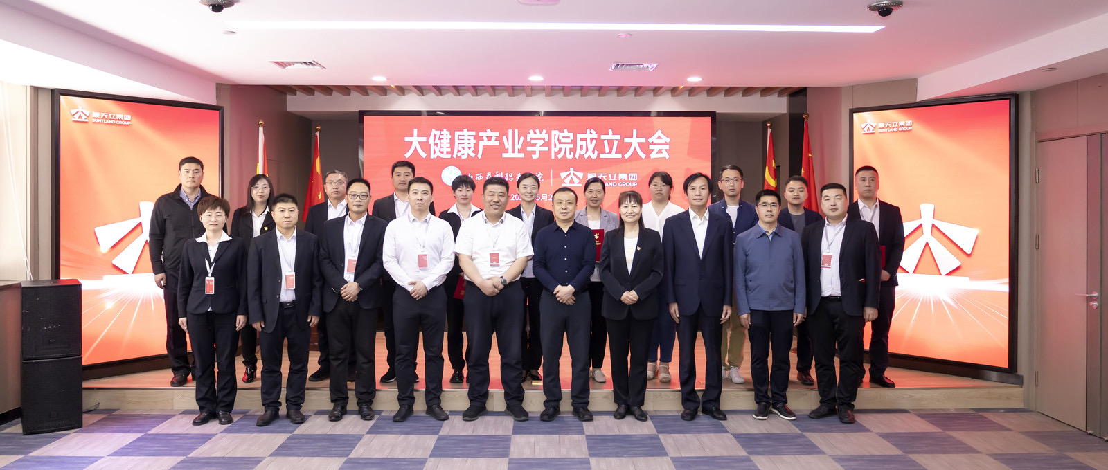 在大家的共同见证下,大健康产业学院正式签约成立,并举行揭牌仪式。