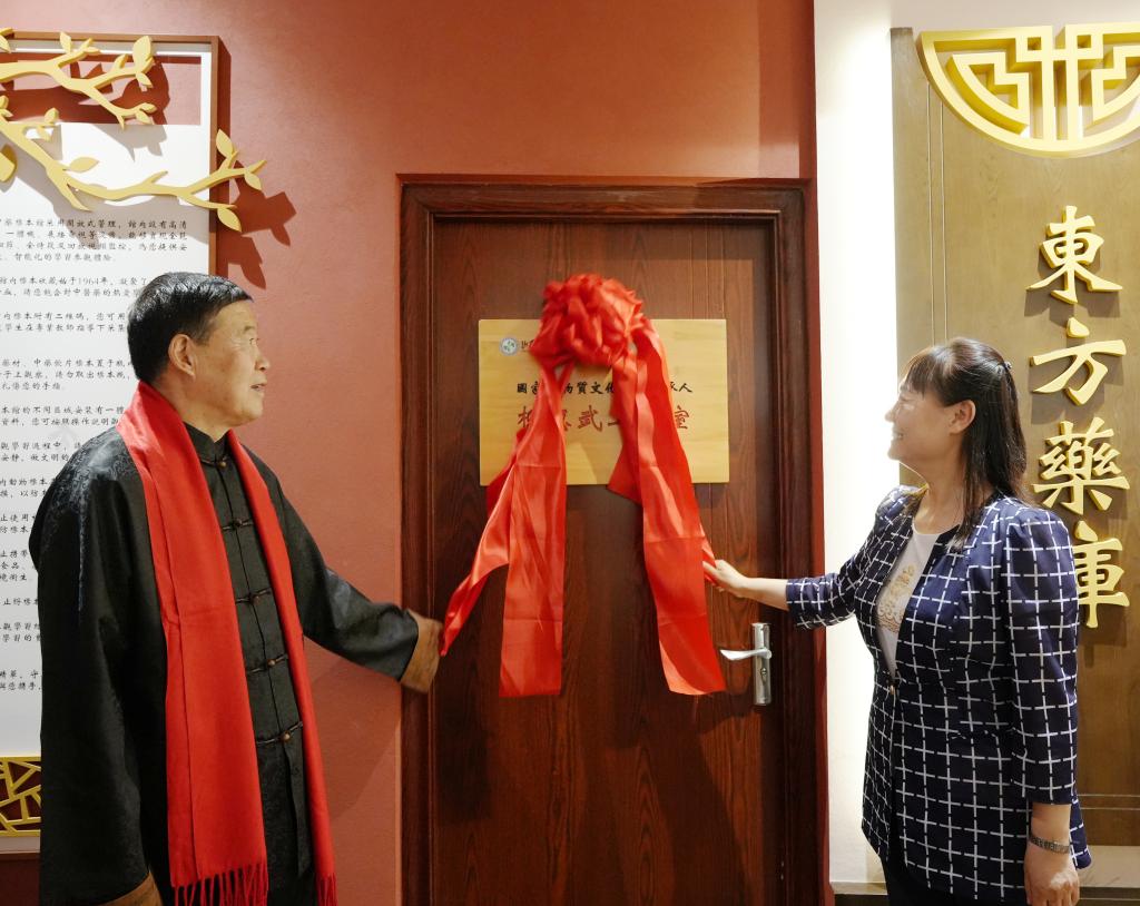 拜师仪式结束后,柳惠武先生与张轩萍院长共同为工作室揭牌。