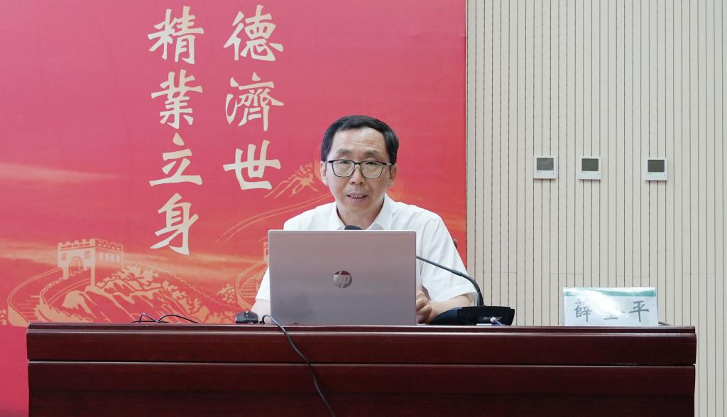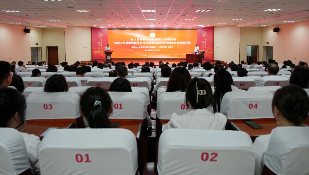 为深入学习贯彻党的二十大精神,扎实推动学习贯彻习近平新时代中国特色社会主义思想主题教育走深走实,6月19日下午,山西省领导干部宣讲团“百人百场报告会进高校”专题宣讲在学院报告厅举行,宣讲团成员、省水利厅总规划师、高级工程师、二级巡视员薛金平受邀到学院为全体党员、学生代表共200余人进行了专题宣讲。党委书记王旭主持报告会并作总结讲话。