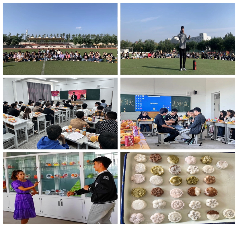 中秋节各类庆祝活动丰富多彩、形式多样。操场上,同学们唱歌、跳舞,风采无限,击鼓传花、你画我猜,气氛活跃,欢笑不断。教室里,品美食、话中秋、师生载歌载舞,欢聚一堂。实训室里,新疆籍学生洗手、取面、搓圆、压扁、放馅、团压、成型,巧手翻转间,美味的冰皮月饼制作完成,使同学们在品尝美味的同时,感受中秋佳节的魅力。同学们纷纷表示,这个中秋虽然没能与亲人团聚,但是学院准备的月饼水果、班里精心组织的中秋活动,让他们感受到了家一样的温暖。