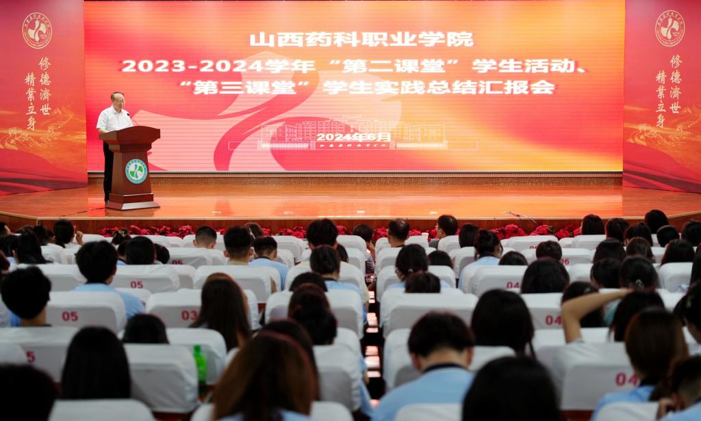 中药系党总支、药学系辅导员代表、体育研究实践工作室、制药系党总支分别汇报了第二课堂工作和第三课堂实践活动的开展情况、特色成果及相关经验;6名学生代表分享了个人在第二、三课堂活动中的收获与感悟。