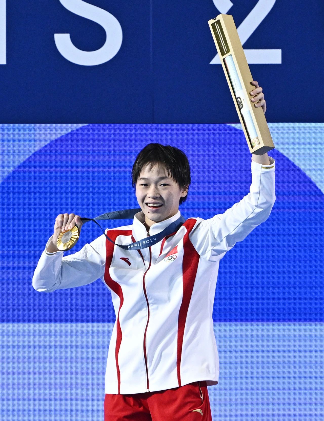 ②8月6日,全红婵获巴黎奥运会跳水项目女子10米跳台金牌。新华社记者 王鹏 摄