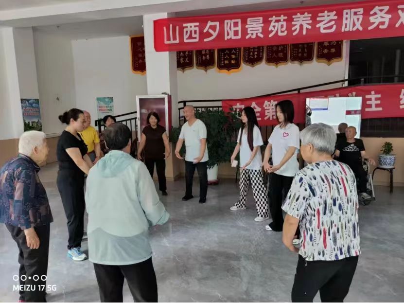下午,实践队员与企业人员一起走进山西夕阳景苑养老服务中心,深入了解老年人的生活,为老人送去温暖,提供志愿服务。养老院负责人表示:“养老院的老人十分喜欢年轻人的到来,养老院希望更多青年志愿者能够来陪老人聊聊天、说说话,养老院需要年轻人的气息来感染。”大家帮助养老院老人打扫卫生,与老人一起聊天,为老人表演精心准备的慰问节目,还带老人一起练习八段锦。