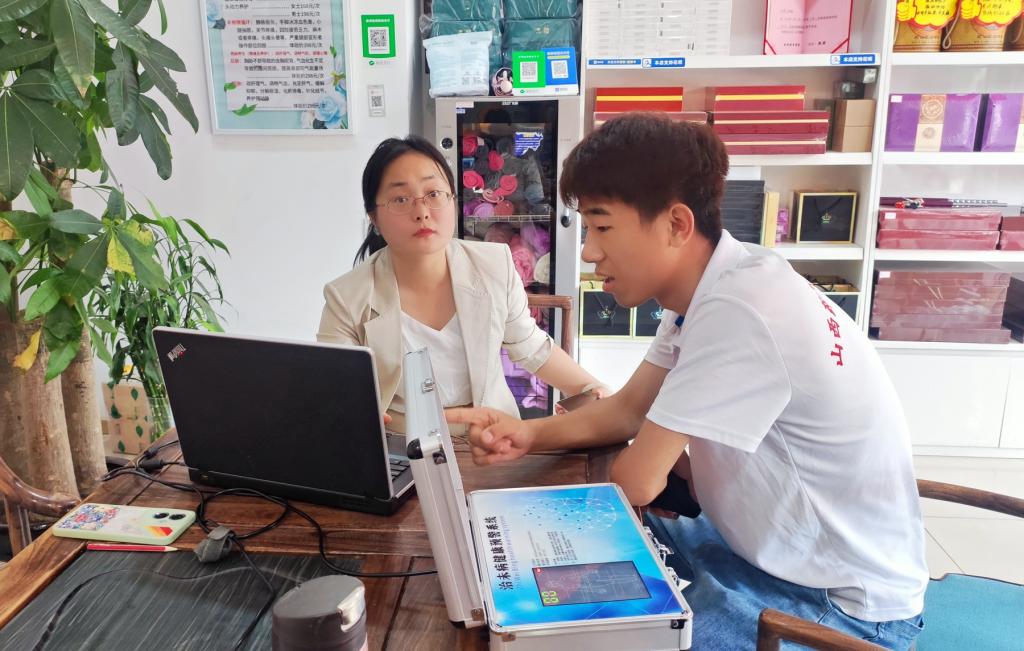 希莱雅山西分公司市场总监王老师给大家讲解了“未病”健康预警系统,介绍了该仪器采用核磁共振的原理来检测身体的健康状态。每位实践队队员都参与了健康检测,在体验的过程中无不惊叹仪器的先进、大健康的神奇以及精准中医辨证分析结果。