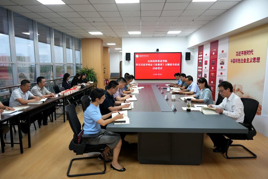 院党委副书记、院长张轩萍宣读《学院学习习近平同志<论教育>主题读书活动实施方案》(以下简称《方案》),对读书活动作安排部署。根据《方案》要求,本次主题读书活动将于2024年9月下旬至2025年1月上旬在全院范围内开展, 共分为深入学习领悟、严格对照反思、认真对标提议、加强整改提高等四个阶段,以期推动党的教育方针、政策在学院落地、落实、落细,为建设全国一流药科职业院校提供有力支撑。