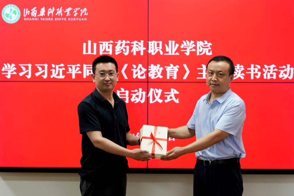 随后,学院领导为部门(单位)代表发放习近平同志《论教育》书籍。
