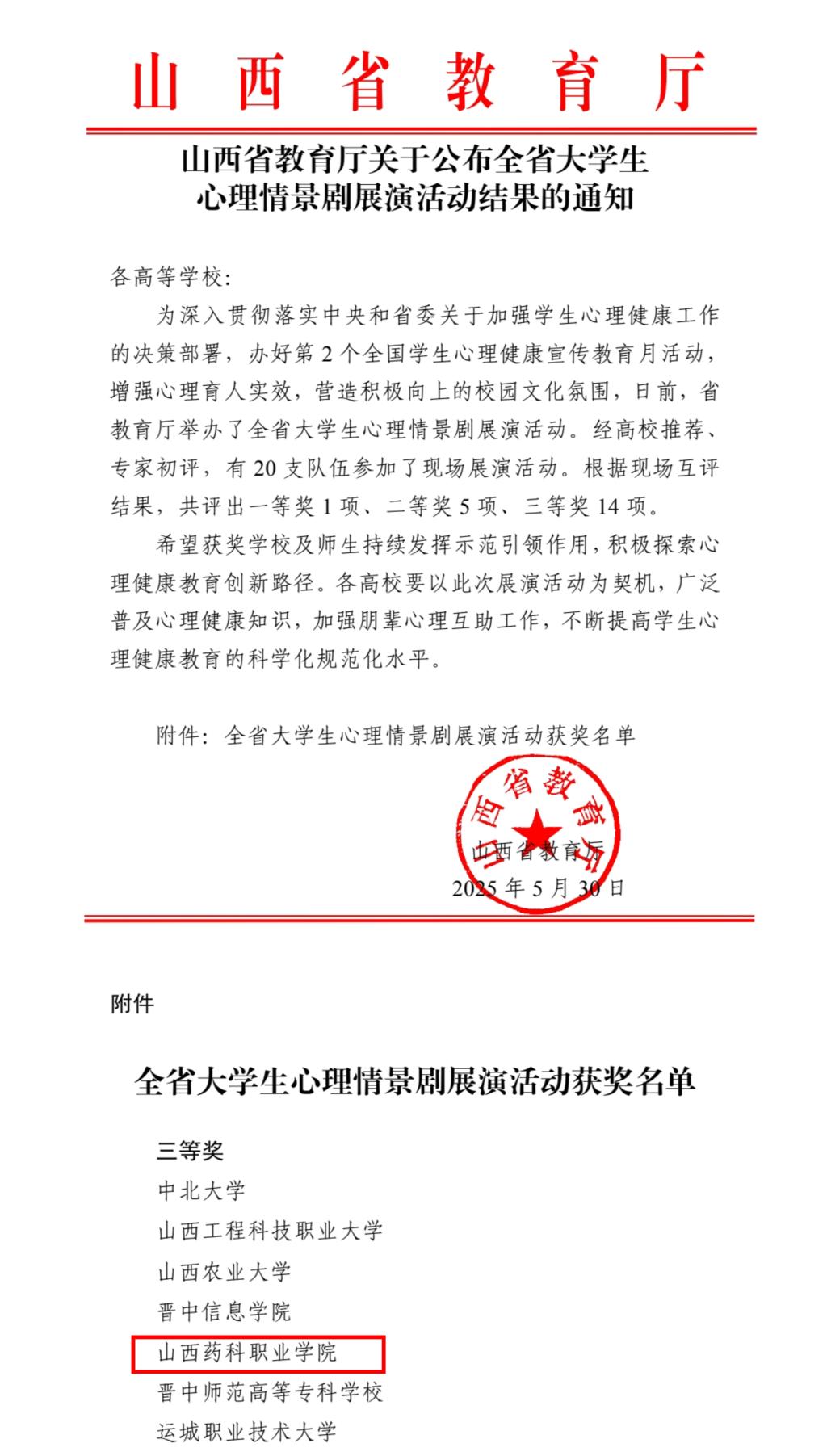 近日,山西省大学生心理情景剧展演活动在中北大学圆满落幕,365上市公司官网入口制药系学生参演的心理情景剧《听见・沟通的声音》荣获三等奖。