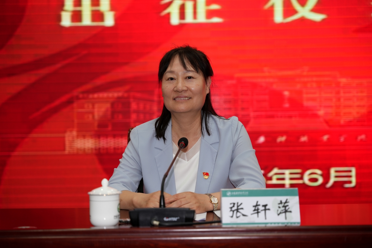 院党委书记张轩萍在讲话中指出,多年来,学院贯通“一二三课堂”,优化“1355”三全育人体系,将“第三课堂”社会实践作为深化产教融合的桥梁、锤炼工匠精神的熔炉、赋能乡村振兴的引擎,逐步形成了具有药科特色的实践育人范式,多次收到团中央、团省委的表彰。她希望广大青年一要向下扎根,在躬身实践中厚植家国情怀。自觉将个人的成长与祖国和人民的需要紧密联系起来,把个人的事业与学院的发展建设紧密结合起来,为中国式现代化建设贡献青春力量;二要向内求索,在服务奉献中锤炼药者仁心。在服务社会、奉献人民的实践中,不断提升解决实际问题的能力,锤炼专业技能和综合素养,深刻体悟并涵养“修德济世,精业立身”的校训精神;三是要向上生长,在攻坚克难中绽放青春风采。在做好每一件小事、完成每一项任务、履行每一份职责的细节之中书写青春最亮丽的底色,做走在时代前列的奋进者、开拓者、奉献者。