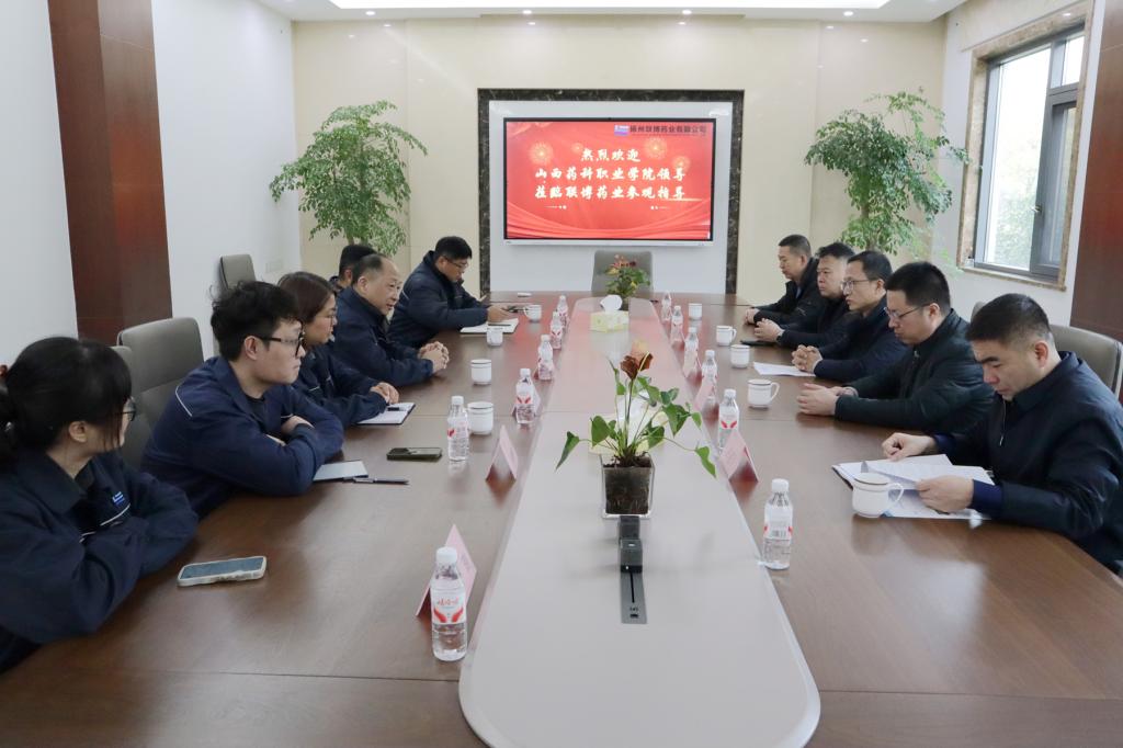 校企携手育新才,产教融合谱新篇。近日,学院党委副书记、院长关伟带队前往扬州联博药业有限公司(以下简称“联博药业”),亲切看望正在进行综合实训的学生,并就深化校企合作进行交流洽谈。学院教务部(教师工作部)、产教融合中心(对外交流中心)、药学系、制药系相关负责人一同随行走访。联博药业总经理黄庆申热情接待学院一行。公司实训学生代表及学院校友代表共同参加此次活动。