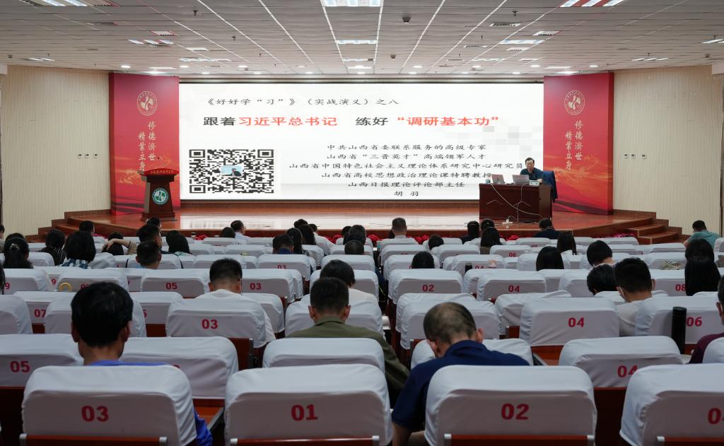 讲座中,胡羽同志以《跟着习近平总书记 练好“调研基本功”》为题,为学院全体党员讲解了《关于在全党大兴调查研究的工作方案》,解读了习近平总书记关于调查研究重要论述的思想方法和工作方法,重温了习近平总书记五年三次亲临山西考察调研情况,回顾了毛泽东同志的“六篇调研报告”光辉文献,使全体党员干部对调查研究这个我们党的传家宝有了更深入更系统的了解,为做好调查研究工作奠定了良好基础。