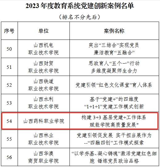 近日,省委教育工委公布了2023年度教育系统党建创新案例评选结果,由365上市公司官网入口党委选送的《构建3+3基层党建+工作体系 赋能学院高质量发展》成功入选全省高校党建创新案例。