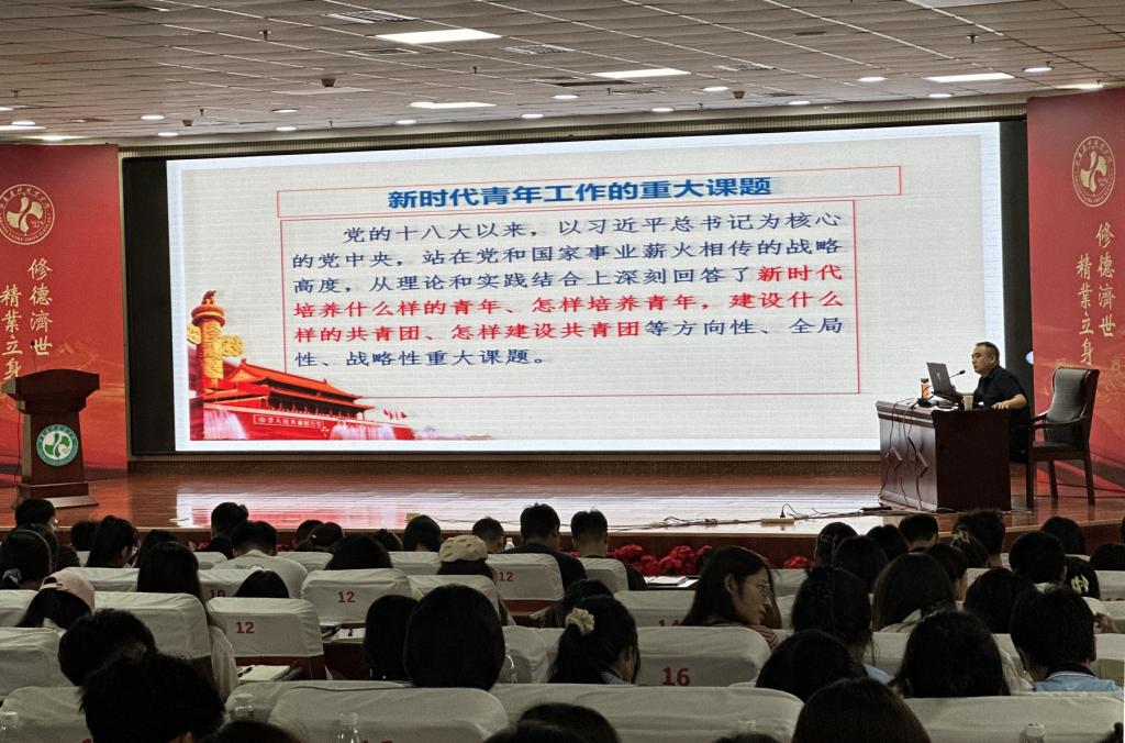 学院思想政治理论教学研究部主任任俊峰以《党的二十届三中全会精神》为题作专题解读,他从党的二十届三中全会召开的重大理论意义、实践意义方面为同学们阐述了进一步全面深化改革、推进中国式现代化“怎么看”“怎么干”“怎么抓落实”等问题。引导广大青年学生努力融入中国式现代化建设新征程。