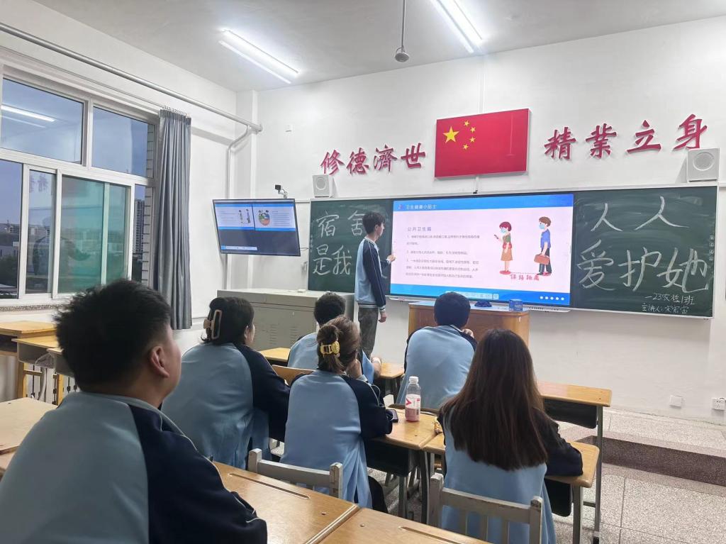 各班以“宿舍是我家,人人爱护她”为主题,主要围绕宿舍安全问题、预防传染病、宿舍卫生、宿舍管理规定四方面展开。各班负责人利用形式多样的PPT,通过生动的图片和案例,强调了宿舍安全的重要性,提出了预防传染病的必要措施。同时,各班负责人就请假手续和宿舍卫生规定进行详细解读。此外,组织小组讨论,探讨宿舍现有问题的针对性改进方式,并呼吁大家一同创建“洁齐美”宿舍,为学习和生活营造一个良好的环境氛围。