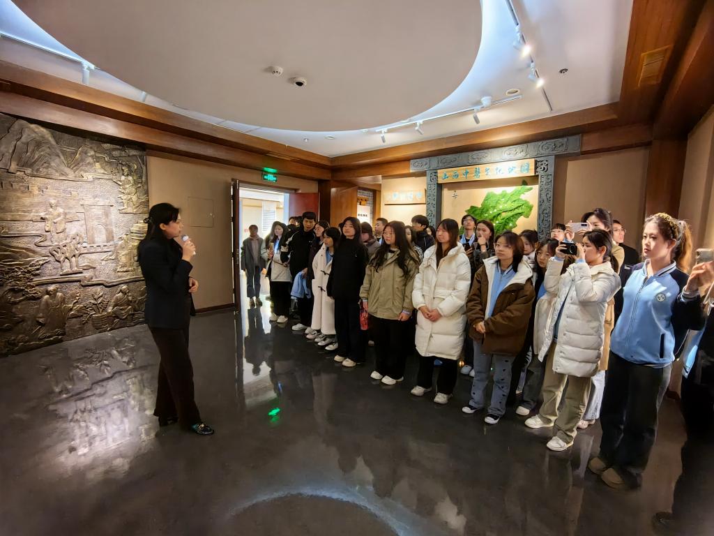 “岐黄道业,源远流长。伏羲画卦,昭示阴阳。投针丸艾,医海滥觞。炎帝神农,百草始尝。本经传世,参产上党……”走进山西中医博物馆,笔走龙蛇、行云流水般的《山西中医颂》便跃入眼帘。在博物馆赵敏馆长的带领下,师生们参观了中医展览馆、中药标本馆、院史馆。在中医展览馆,大家感受了国医源流,中医药起源于先民的生产生活实践,一系列鲜活的实物器具和丰富的神话传说,为我们展现了穿越时空的历史画卷。在标本馆,大家参观了具有地域特色的山西道地中药材,了解诸多三晋名医,体悟中医药文化的多样性。在院史馆,大家领略了山西省中医院的建设历程与历代医家的重要贡献,感悟了中医精神的延续与传承。