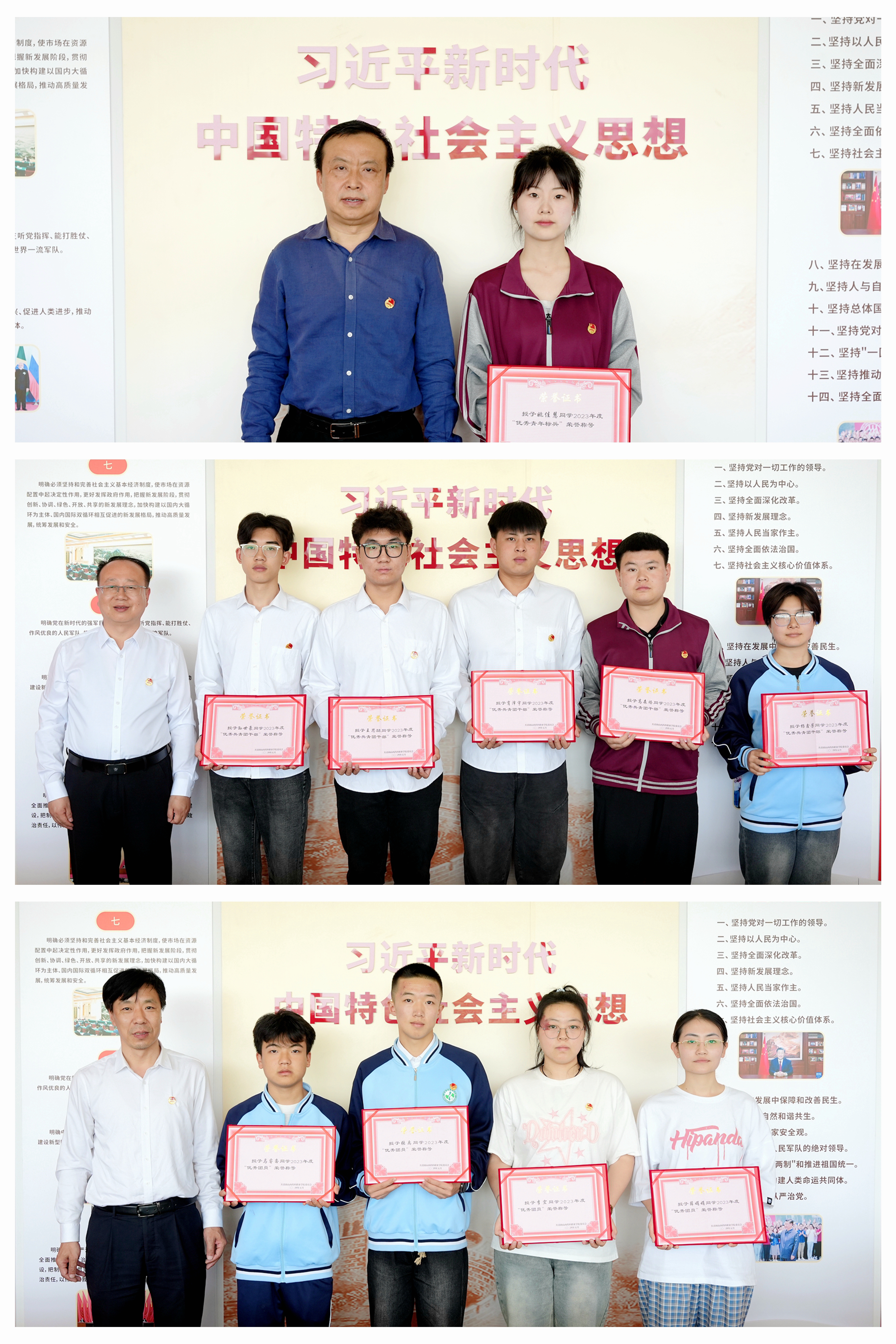 会上,学院领导为五四受表彰学生代表颁发了荣誉证书并赠送了学习读物——《习近平与大学生朋友们》。