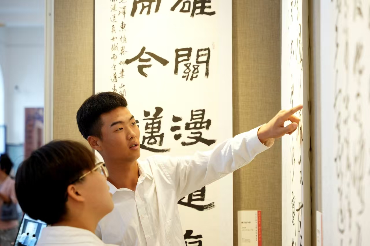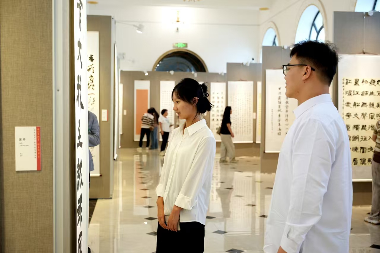 展览现场,200余幅精选自全省大中小学教师创作的优秀书法、国画作品令人目不暇接、大为赞叹。这些作品不仅展示了教师们扎实的艺术功底,更蕴含了他们对教育事业的赤诚情怀和砥砺担当。“这次活动不仅是一场视觉与心灵的盛宴,更是情感交流的桥梁、文化传承的纽带,作品中传达了浓厚的师者情怀和强烈的责任担当,让我备受感动。”素质教育教学研究部教师高洁深有感触地说道。同学们则无不赞叹,在感受艺术滋养和启迪的同时,更深刻体会到老师们的教诲之恩,心中充满敬意与感激之情。