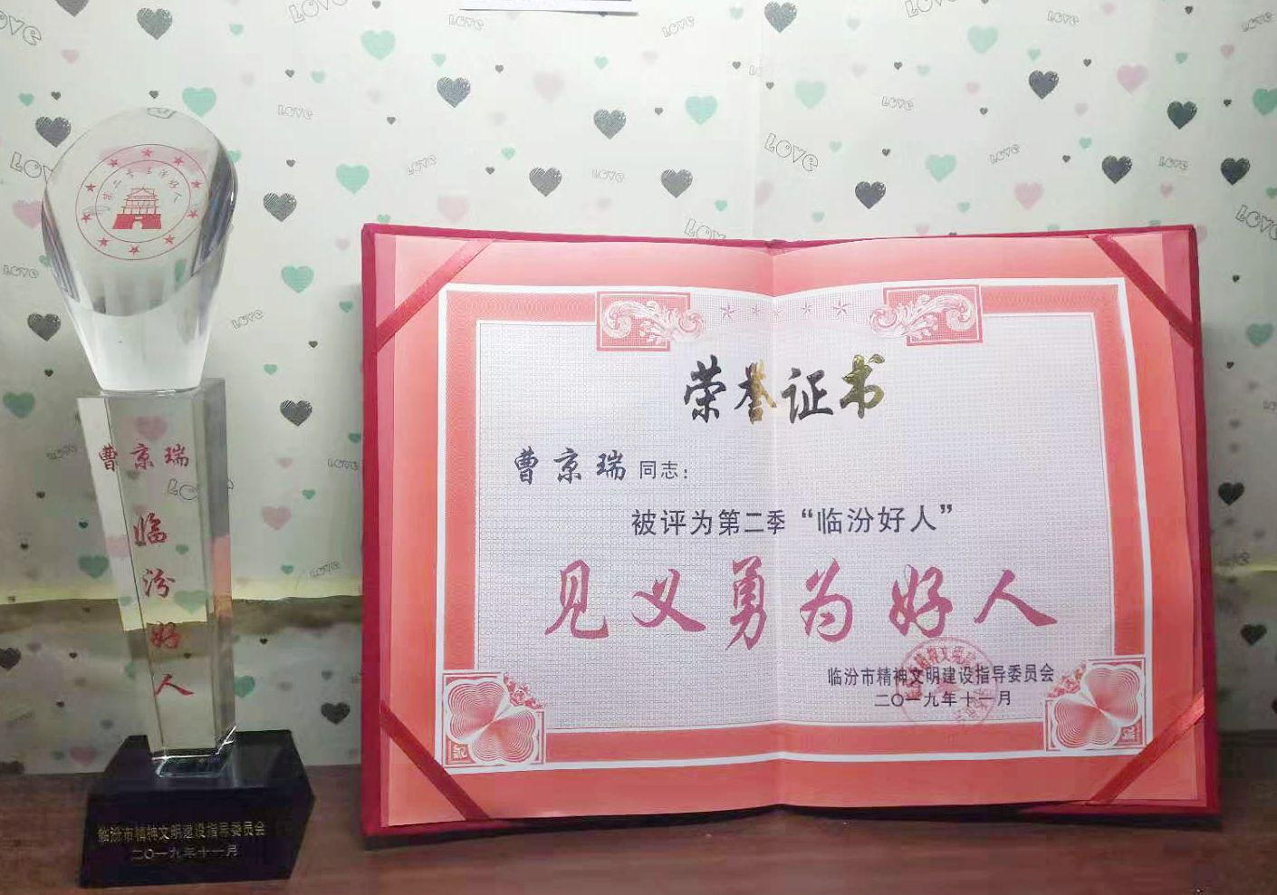 365上市公司官网入口学生曹京瑞荣膺临汾市第二季见义勇为“临汾好人”荣誉称号