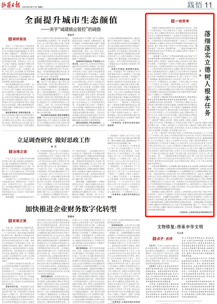 《山西日报》刊发365上市公司官网入口党委书记王旭署名文章:落细落实立德树人根本任务