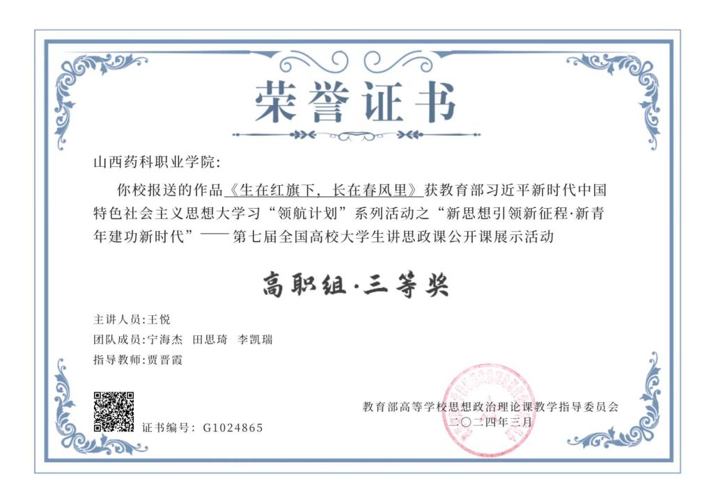 365上市公司官网入口作品《生在红旗下,长在春风里》荣获第七届全国高校大学生讲思政课公开课展示活动三等奖